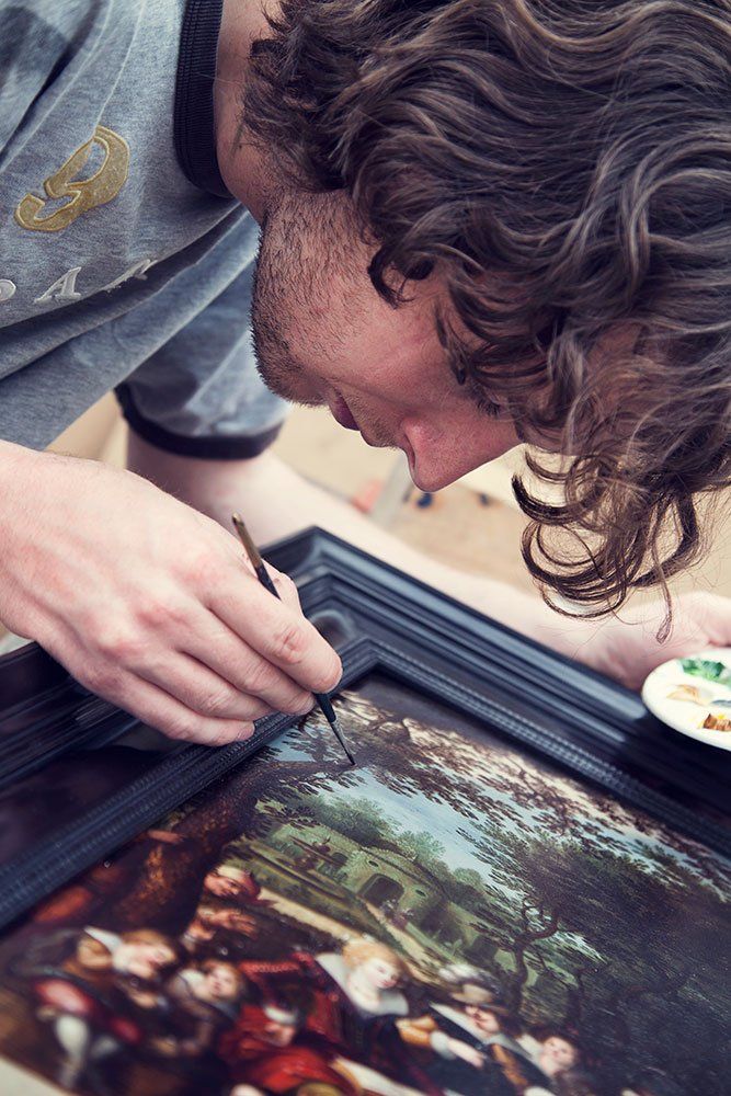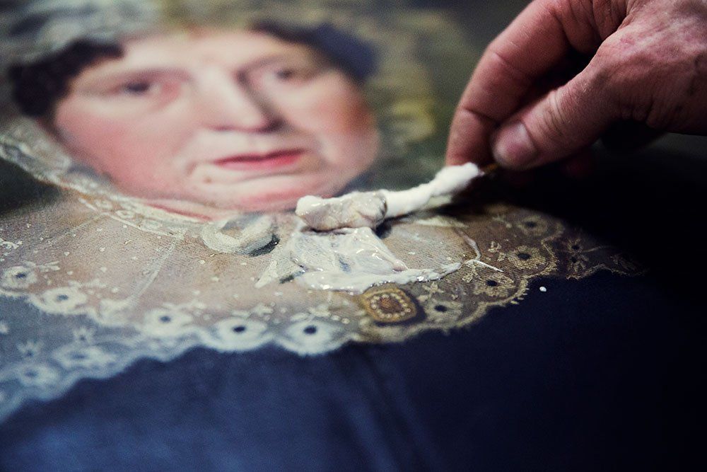 Removing a varnish that isn't a picture varnish using cotton pads to hold the solvent in place to break down the varnish. #thecollector #thecollectorantiques #antiques #artrestoration #restoration #oil #oilpainting #artwork #conservation #artconservaion #fineart #fineartrestoration #easelpainting #therepairshop #antiquesshop #artrestoration